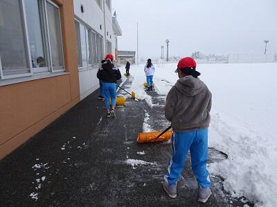 雪が降りました 投稿: 担当者1 (10:54) 今朝は、昨日に続き雪模様。 ですが、昨日よりたくさん雪が積もりました。 出勤した職員は雪かきに追われています。 すると、 登校した児童が、手伝ってくれていました。 何も言われずとも、すすんで動くことができる児童が大東小にはいます。 嬉しいことです。 中庭には、雪のお友達が登場です。1年生の力作です。