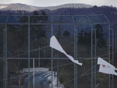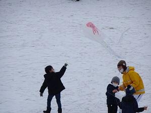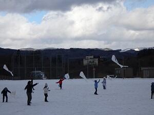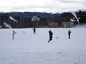 大東小の校庭に凧が舞い上がりました。